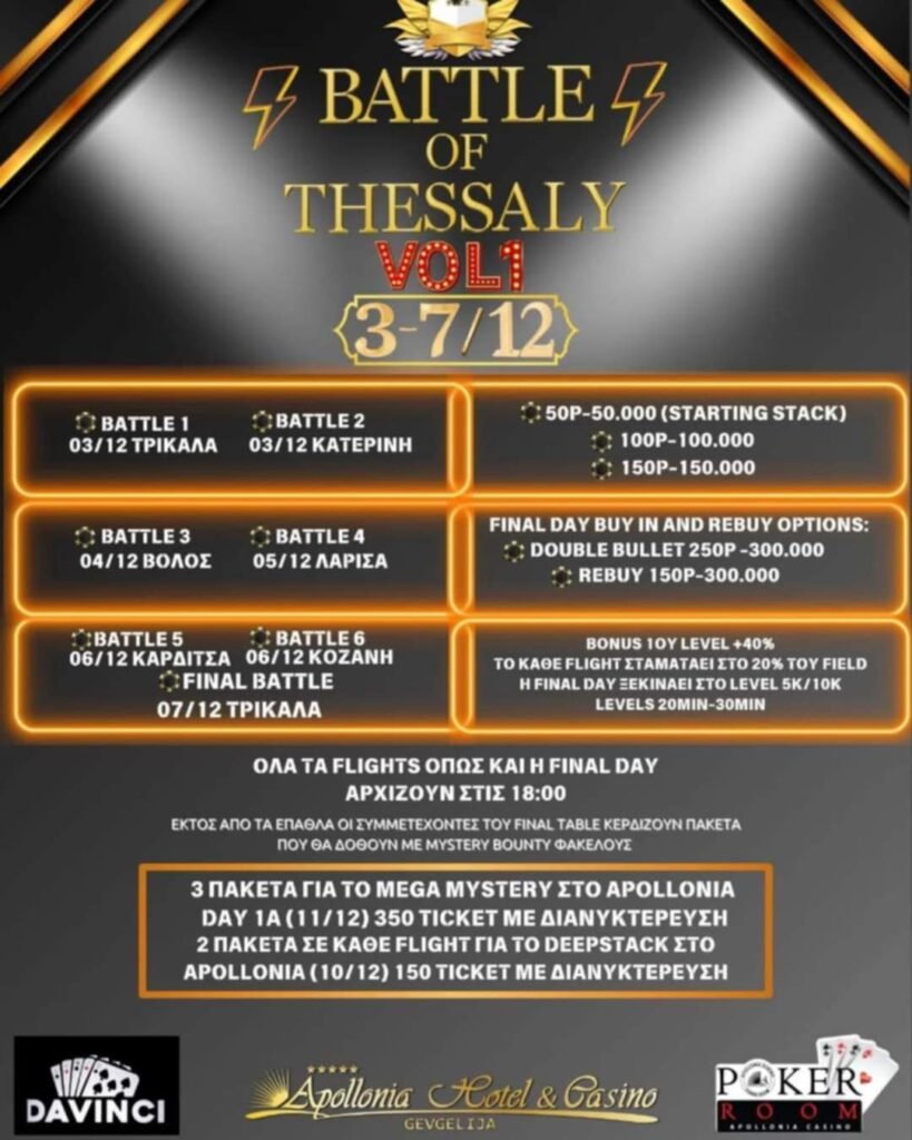 Ανακοινώθηκε το Battle of Thessaly Vol.1 το οποίο θα διεξαχθεί από την Τρίτη 3 Δεκεμβρίου έως την Κυριακή 7 Δεκεμβρίου.