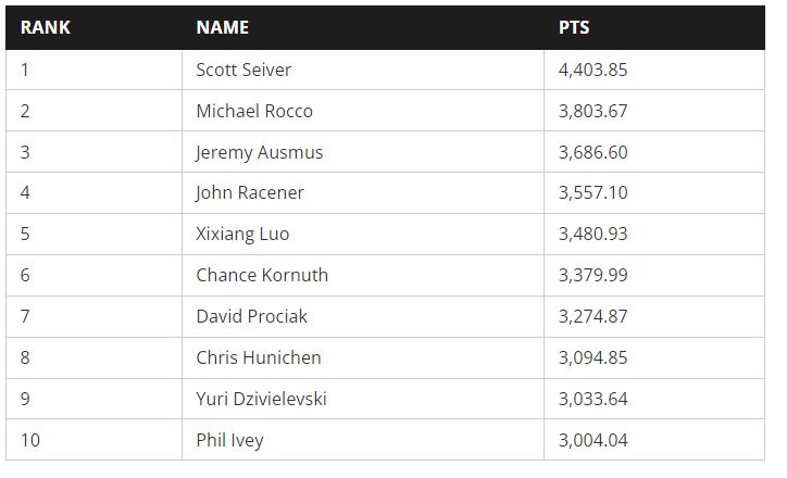 Στην τελική βαθμολογία ο Seiver για να κερδίσει τον τίτλο άφησε πίσω του παίκτες όπως οι Michael Rocco και Jeremy Ausmus που σημείωσαν επίσης σημαντικές επιτυχίες στην φετινή διοργάνωση, ενώ από την τελική δεκάδα δεν θα μπορούσε να απουσιάζει και ο Phil Ivey!