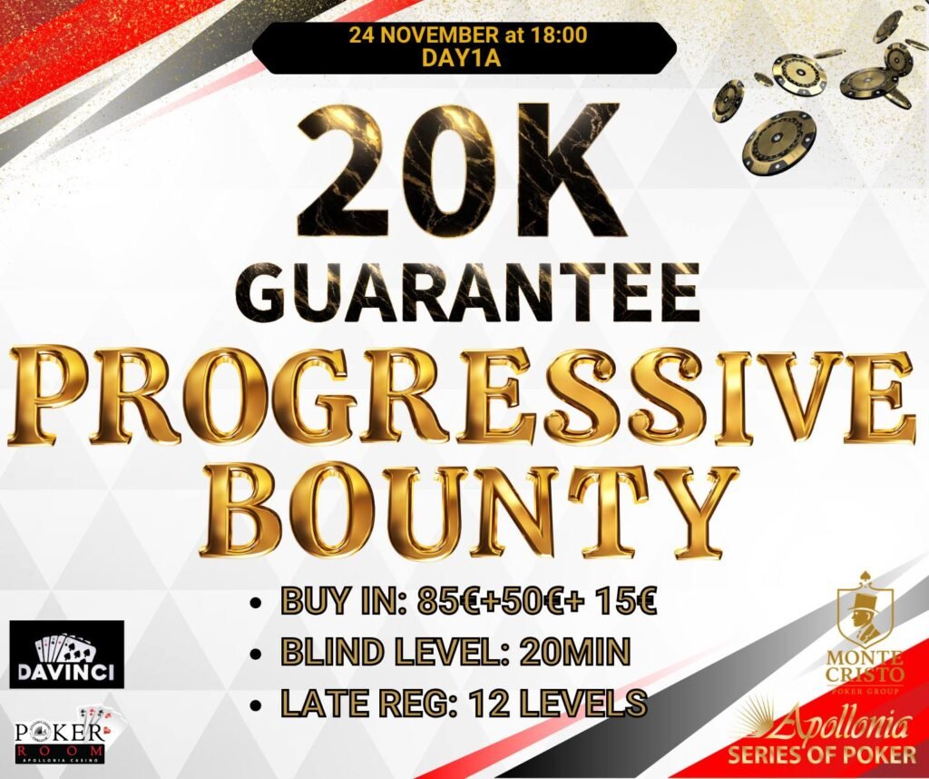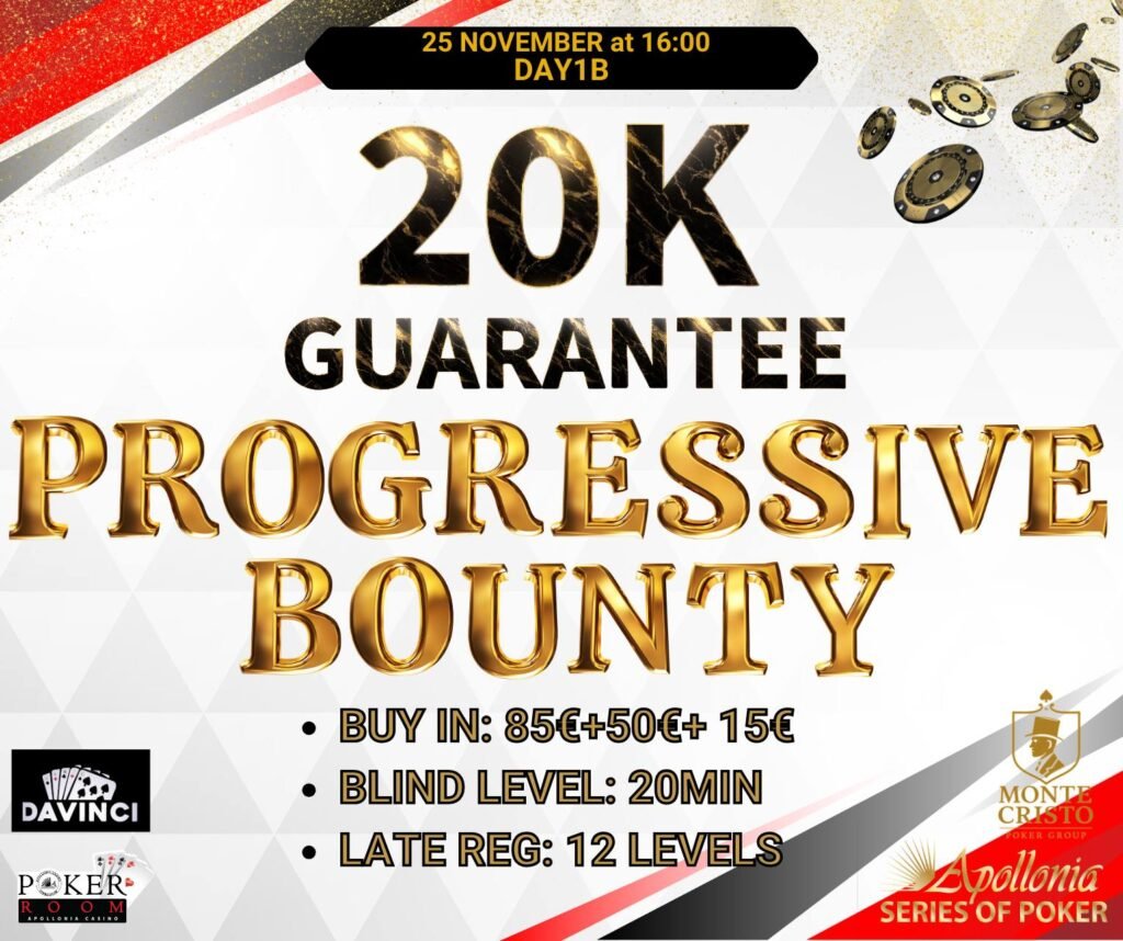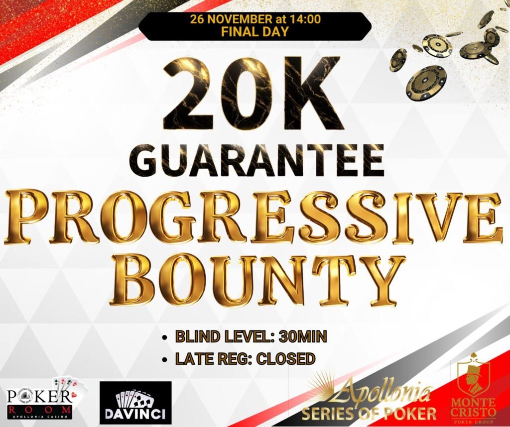 • 14:00 – Progressive Bounty (Final Day) 20.000€ GTD