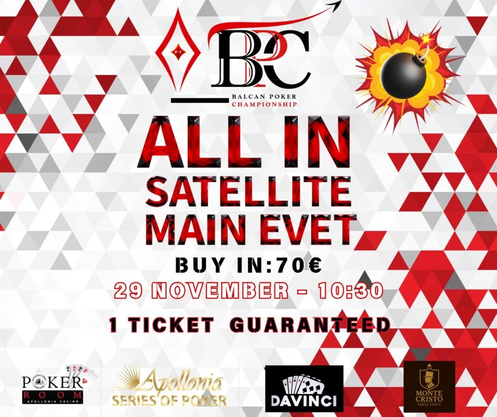 • 20:30 – Bomb All In Satellite to Main Event- Buy-in: €70