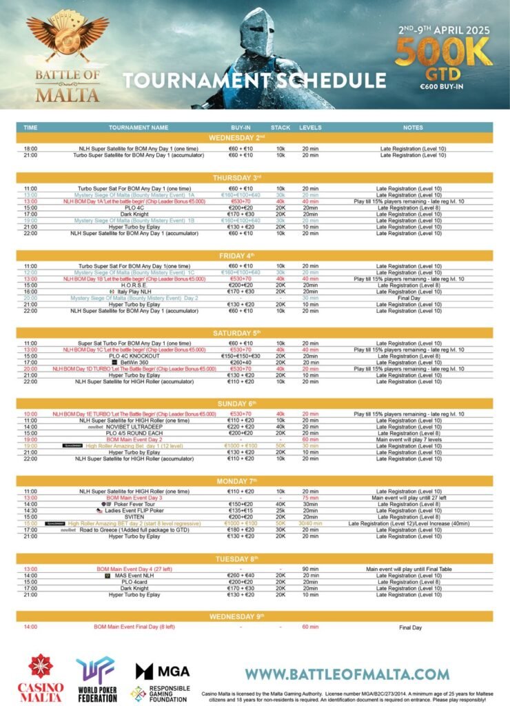 Το Battle of Malta 2025 υπόσχεται μια αξέχαστη εμπειρία για όλους τους λάτρεις του πόκερ, συνδυάζοντας συναρπαστικά τουρνουά με την όμορφη ατμόσφαιρα της Μάλτας.