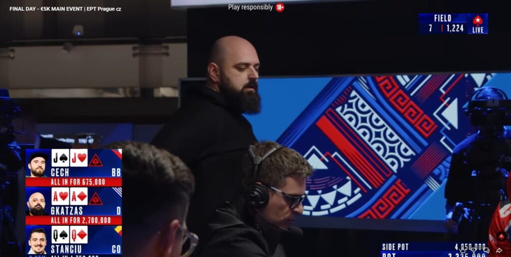 Μία από τις μεγαλύτερες επιτυχίες στην ιστορία του ελληνικού live πόκερ πέτυχε σήμερα ο Δημήτρης Γκατζάς, κατακτώντας τη τρίτη θέση στο €5.300 Main Event του EPT της Πράγα και το εντυπωσιακό έπαθλο των €574.586(!), έπειτα από συμφωνία (deal) ανάμεσα στους τρεις φιναλίστ.