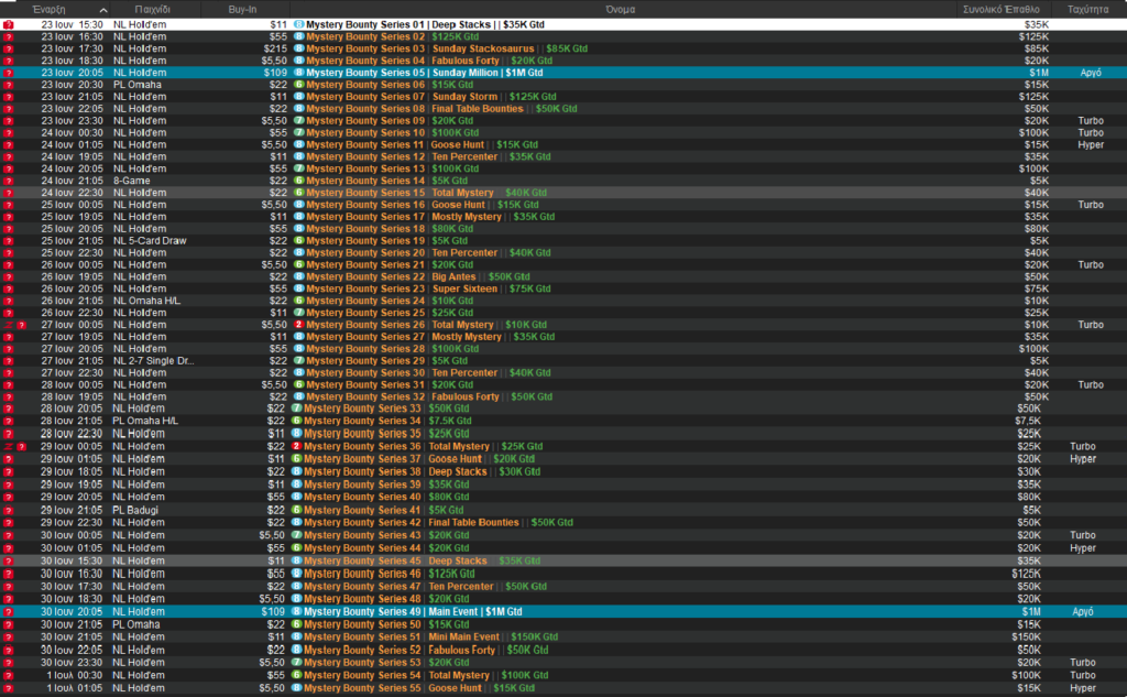 Συνολικά θα διεξαχθούν 50 Mystery Bounty Events με εγγυημένα έπαθλα $4.000.000 από την Κυριακή 23 Ιουνίου έως και την Δευτέρα 1 Ιουλίου.