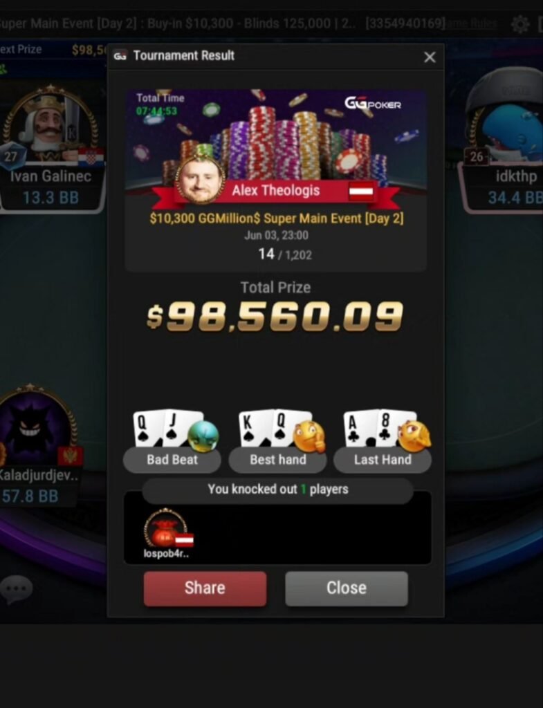 Ένα ακόμα κατόρθωμα του Αλέξανδρου “pwndidi” Θεολόγη αυτή τη φορά στο $10.300 GGMillions Super Main Event της GG poker όπου κατέλαβε την 14η θέση για $98.560.