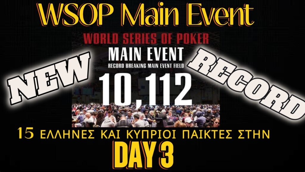 WSOP:  Έσπασε ρεκόρ σε συμμετοχές το Main Event – 15 Έλληνες και Κύπριοι παίκτες στην DAY 3 !!!!!